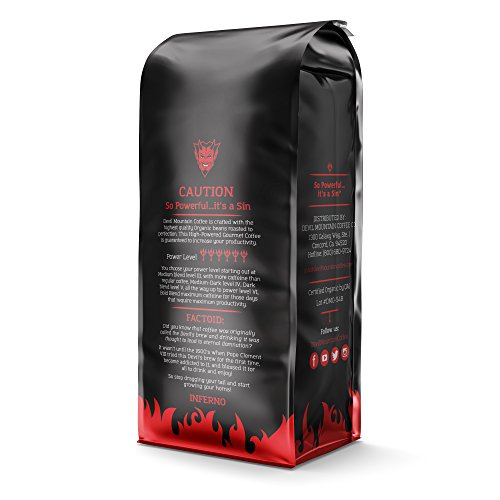 Devil Mountain Coffee Black Label Dark Roast Ground Coffee ... 2X CAFFEINE THAN AVERAGE CUP OF COFFEE: If you are mad for high-powered coffee beverages then you'll love Black Label high caffeine coffee because it ... Devil Mountain Coffee Co. Black Label gives you premium high-altitude Organic beans with a great aroma, more body, and rich flavor. Enjoy High-Powered Gourmet Coffee strong and ...